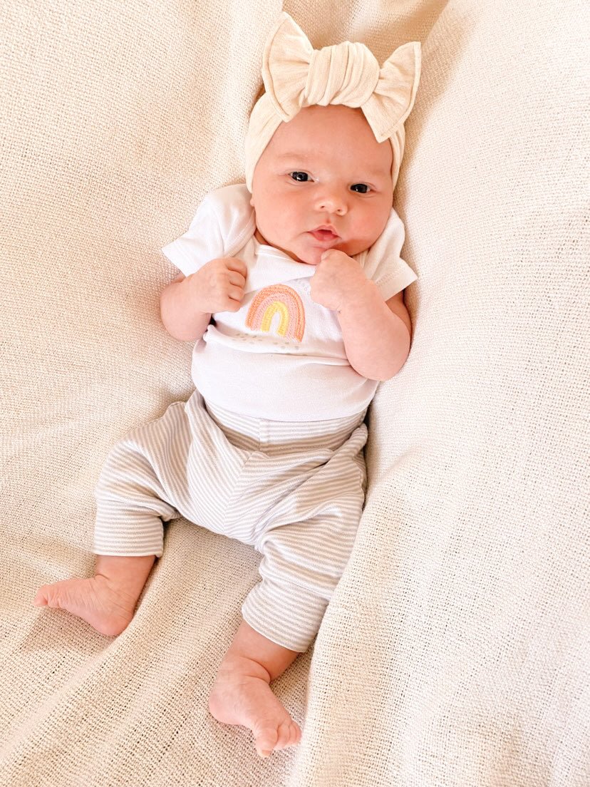 Pour un bébé naissant ou moins d'un an, nous suggérons le bandeau de nylon. Les bandeaux sont très flexible et ne laisse pas de marque rouge sur la tête de bébé. Enfin un bandeau qui tient en place et ne serre pas la tête.